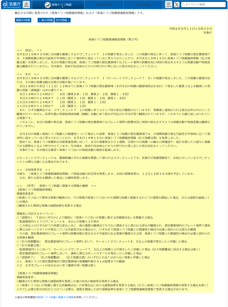 南海トラフ地震関連解説情報(第3号)