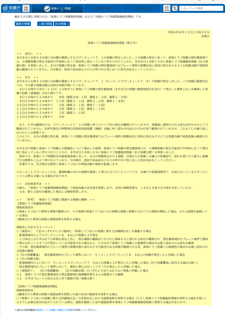 南海トラフ地震関連解説情報(第5号)