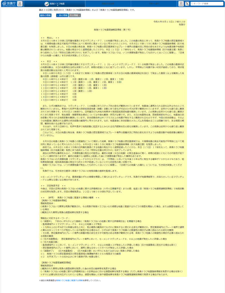 南海トラフ地震関連解説情報(第7号)